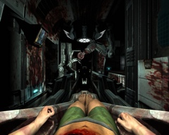 2006年初,博士玩了另一套Raven出品的「單機」動作遊戲佳作《雷神之鎚4》(Quake 4),裡面也出現了一個…嗯…值得咀嚼再三的特殊畫面。這款2005年底發行的第一人稱射擊遊戲延續了二代的劇情,一大群士兵闖進跟博格人沒有關係的Strogg大本營,準備發動人類陣營的大反擊。除了英雄主義之外,和隊友間的聯手作戰是最重要的賣點,而設計得十分緊致的關卡張力十足,維持了Raven的一貫本色。但是到了遊戲中盤,玩家所扮演的主角Matthew Kane被最終魔王Markon俘虜了!