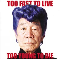 今年首度登上日本紅白的氣志團看起來很像是莫名其妙的攪笑團體,至少他們來台灣的時候,我們的媒體是這麼行銷這個團體;就好像夾子的小應上電視時,主持人總希望他講幾個冷笑話一樣。但是不聽J-Pop或J-Rock的我,每次看到他們的專輯封面都會很想哭喔這張封面的專輯題名是俗到不行的「青春無悔」,但是看著這個染著紫色頭髮的老摳摳暴走族,你不會覺得切題到一種要人命的地步嗎?龐克老頭已經瞇到快睡著的眼睛似乎在說:「就算吃到了七十歲,我還是幹勁十足哪!」